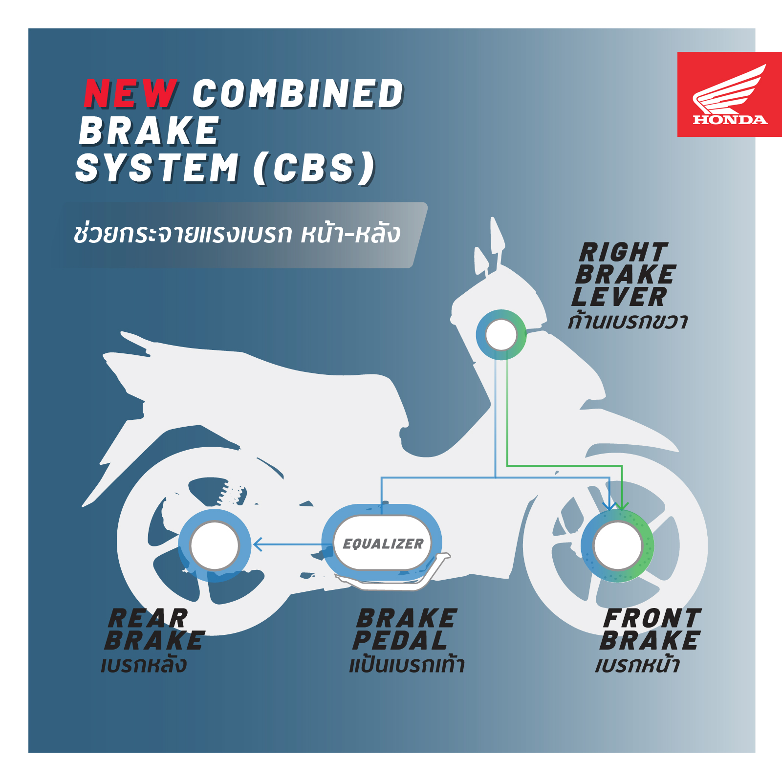 • ระบบเบรก Combined Brake System เบรกมั่นใจทั้งหน้า-หลัง