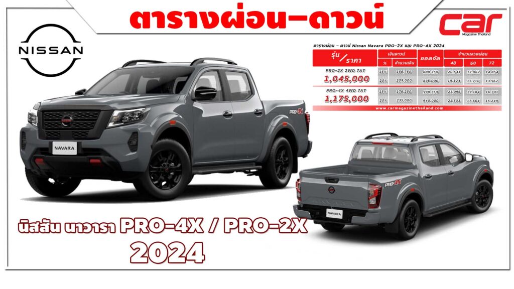 ตารางผ่อน – ดาวน์ Nissan Navara PRO-2X และ PRO-4X 2024 ใหม่ EURO5 ราคาเริ่ม 1,045,000 บาท